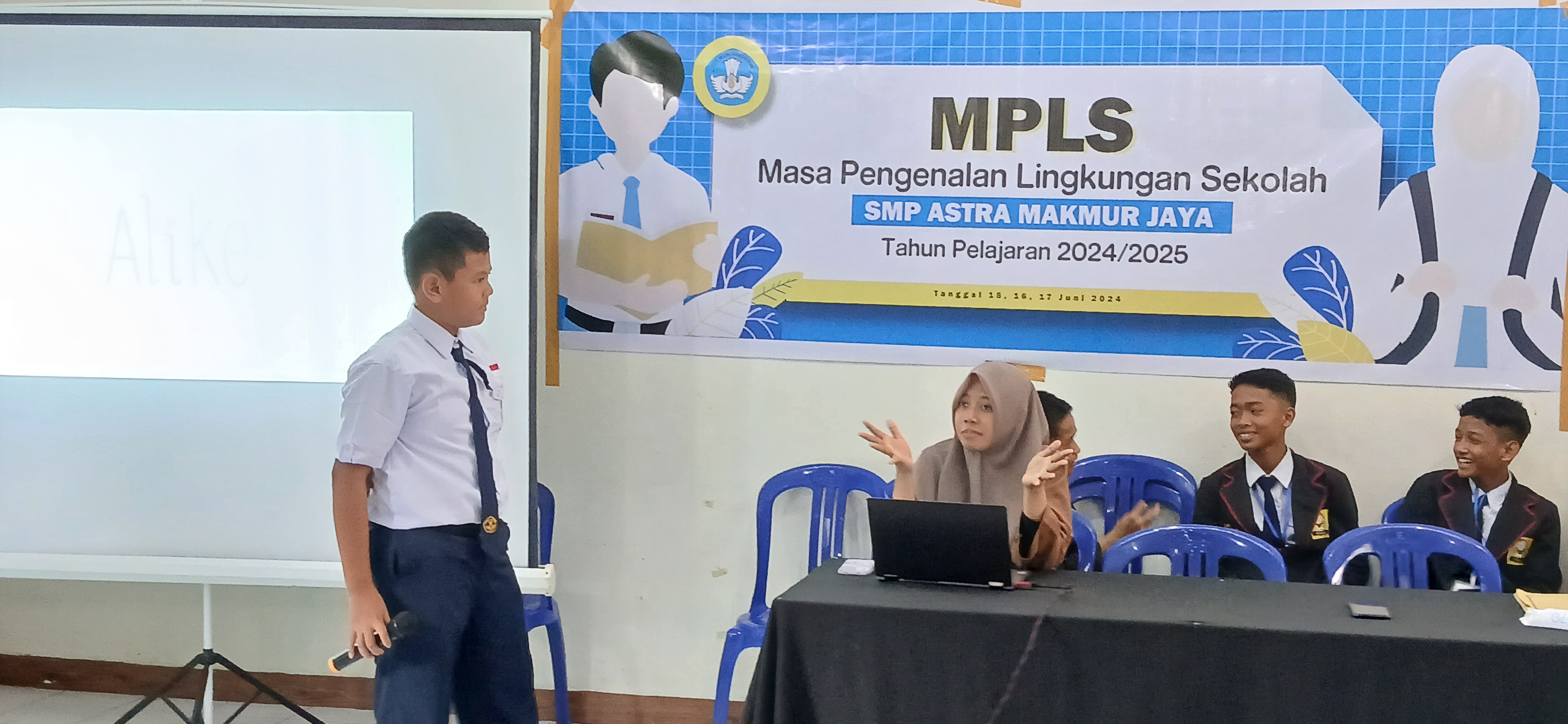 Masa Pengenalan Lingkungan Sekolah (MPLS) SMP Astra Makmur Jaya Tahun Pelajaran 2024/2025 memasuki hari kedua, Selasa (16/7/2024). Seluruh siswa kelas VII masih tampak energik. Masih bertempat di ruangan yang sama, peserta MPLS mengikuti kegiatan dengan antusias.